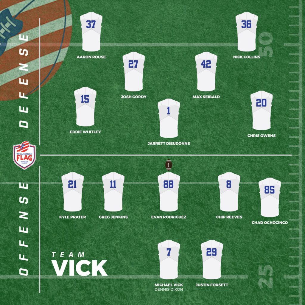 I slutten av juni ble det spilt en første kamp i en liga som satser på å gjennomføre sin første fulle sesong neste år: American Flag Football League. Med Michael Vick, Terrell Owens, Chad ‘Ochocinco’ Johnson, Jonas Gray, Justin Forsett, Kerry Rhodes og en rekke andre tidligere NFL-stjerner på banen, så ikke AFFL ut som en hvilken som helst bakgårdsfotball.